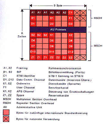 Die Nutzsignale werden in einzelnen Rahmen uebertragen, wobei jeder Rahmen Management- und Nutzsignal-Bytes enthaelt.