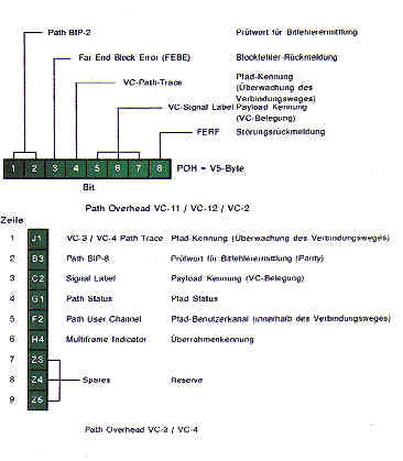 Es sind (fast) alle PDH-Nutzsignale und die SDH-Grundsignale als Zubringer-Bitraten moeglich. Jedes Nutzsignal wird in einen passenden Container verpackt. Durch Hinzufuegen der POH-Bytes wird aus dem Container ein Virual Container VC. Die POH-Bytes werden VC-POH genannt.